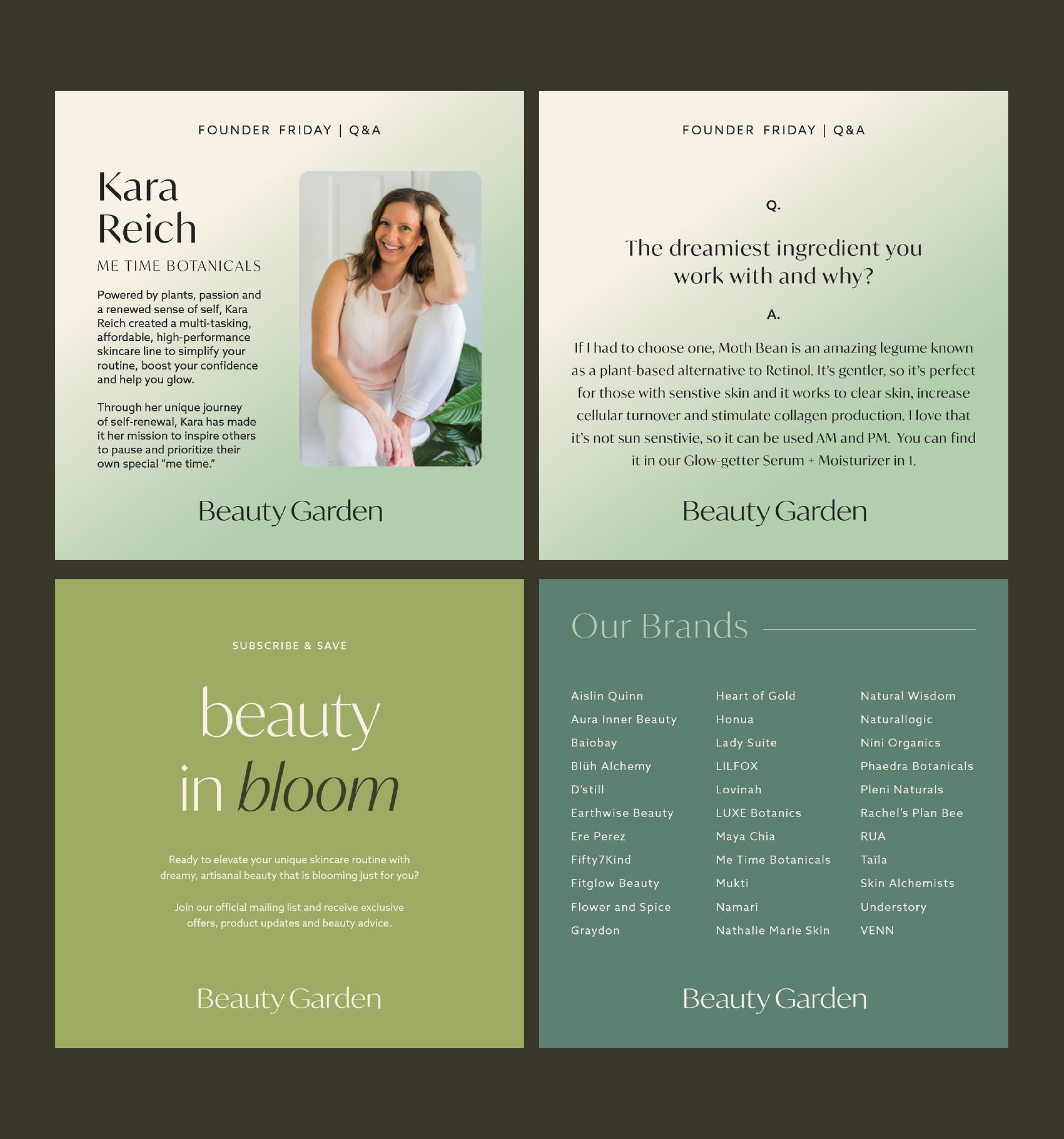 For social content, we featured the founders of the brands carried on the site and shared product tips to connect with and educate the Beauty Garden community.